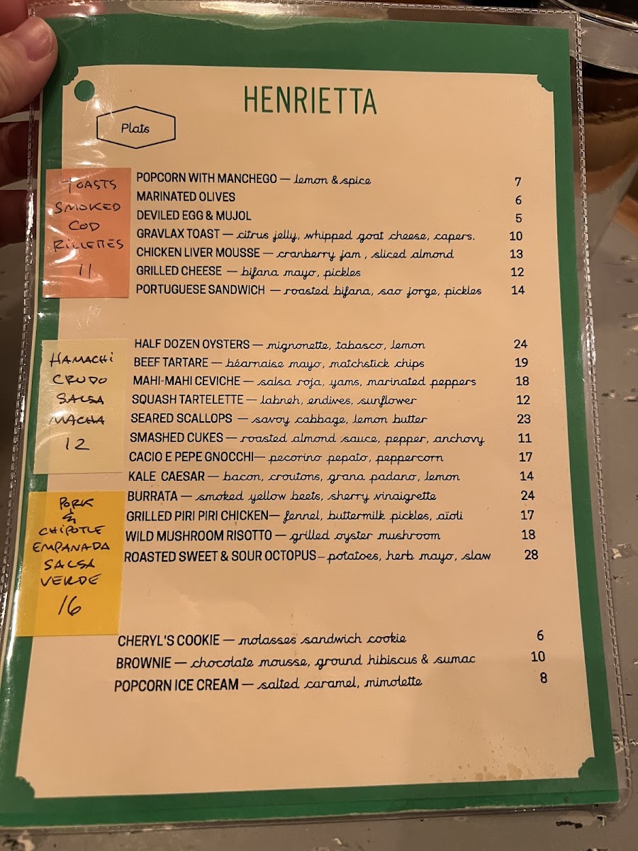 Whether stopping by for a casual evening of drinks and shared snacks or settling in for a fuller meal like the shrimp and calamari risotto, Bar Henrietta offers a welcoming space where food and atmosphere come together quietly to create enjoyable everyday moments.