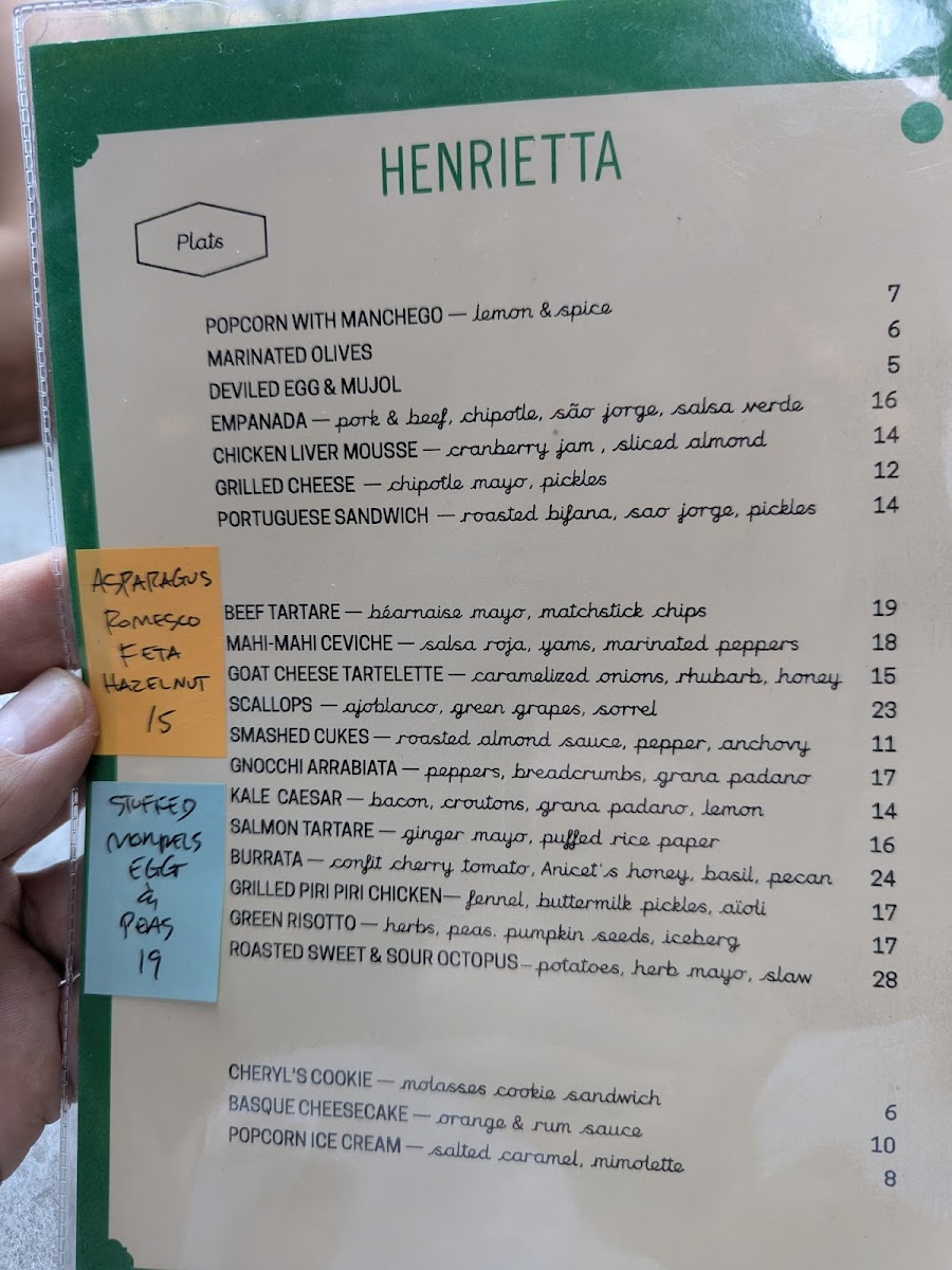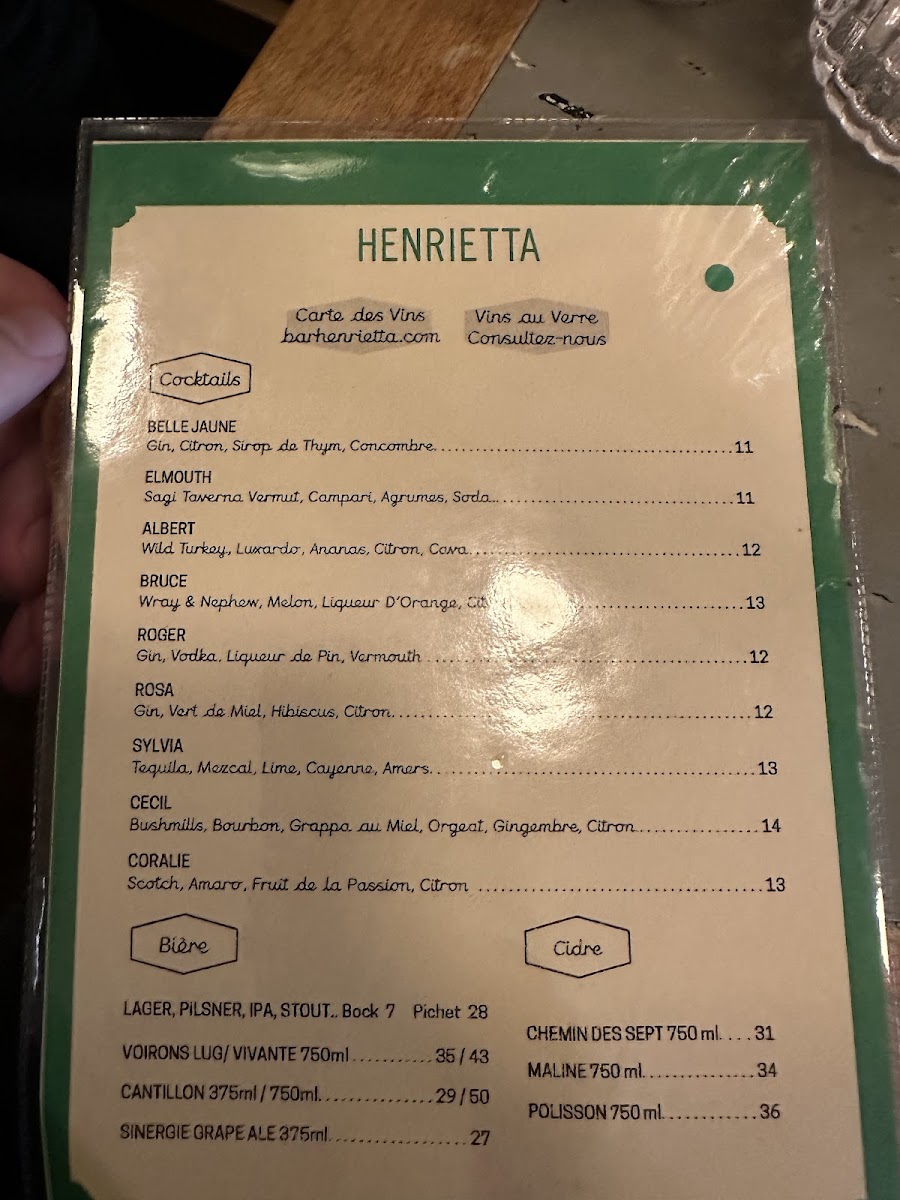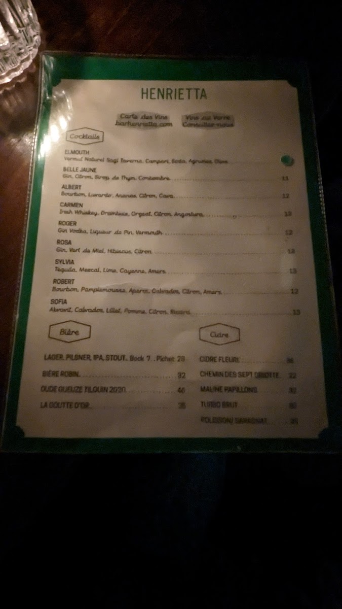 The menu at Bar Henrietta reflects a comfortable and inviting wine bar experience, offering a well-curated selection of casual bites and thoughtfully crafted drinks. It balances simple café-style plates with heartier options, making it easy to enjoy both light snacks and more filling dishes throughout the evening.